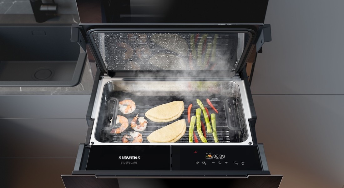 Siemens brengt als eerste een stoomlade naar de Nederlandse keuken. Met dit compacte apparaat kunnen ingrediënten met stoom worden bereid, zonder dat een volledige stoomoven nodig is. Hiermee breidt het merk zijn aanbod verder uit en verkent het nieuwe mogelijkheden voor koken met stoom in de thuiskeuken.